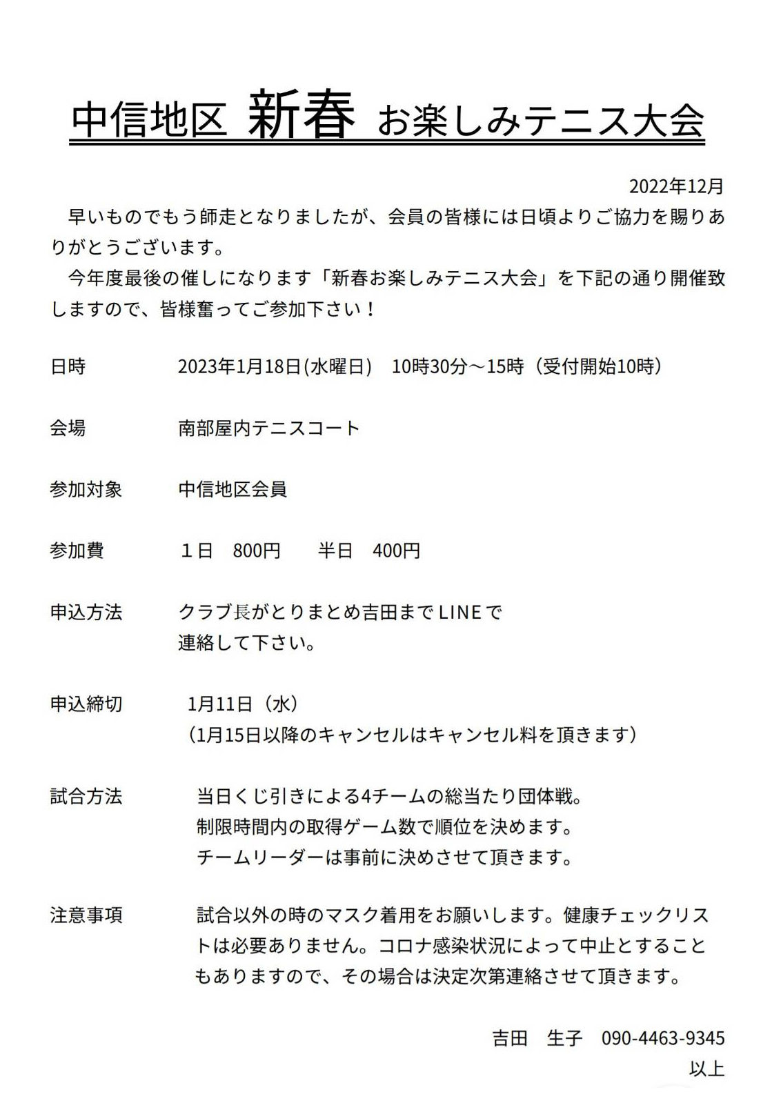 11月1日(金) | 荒神山テニスコート | 要項 | |