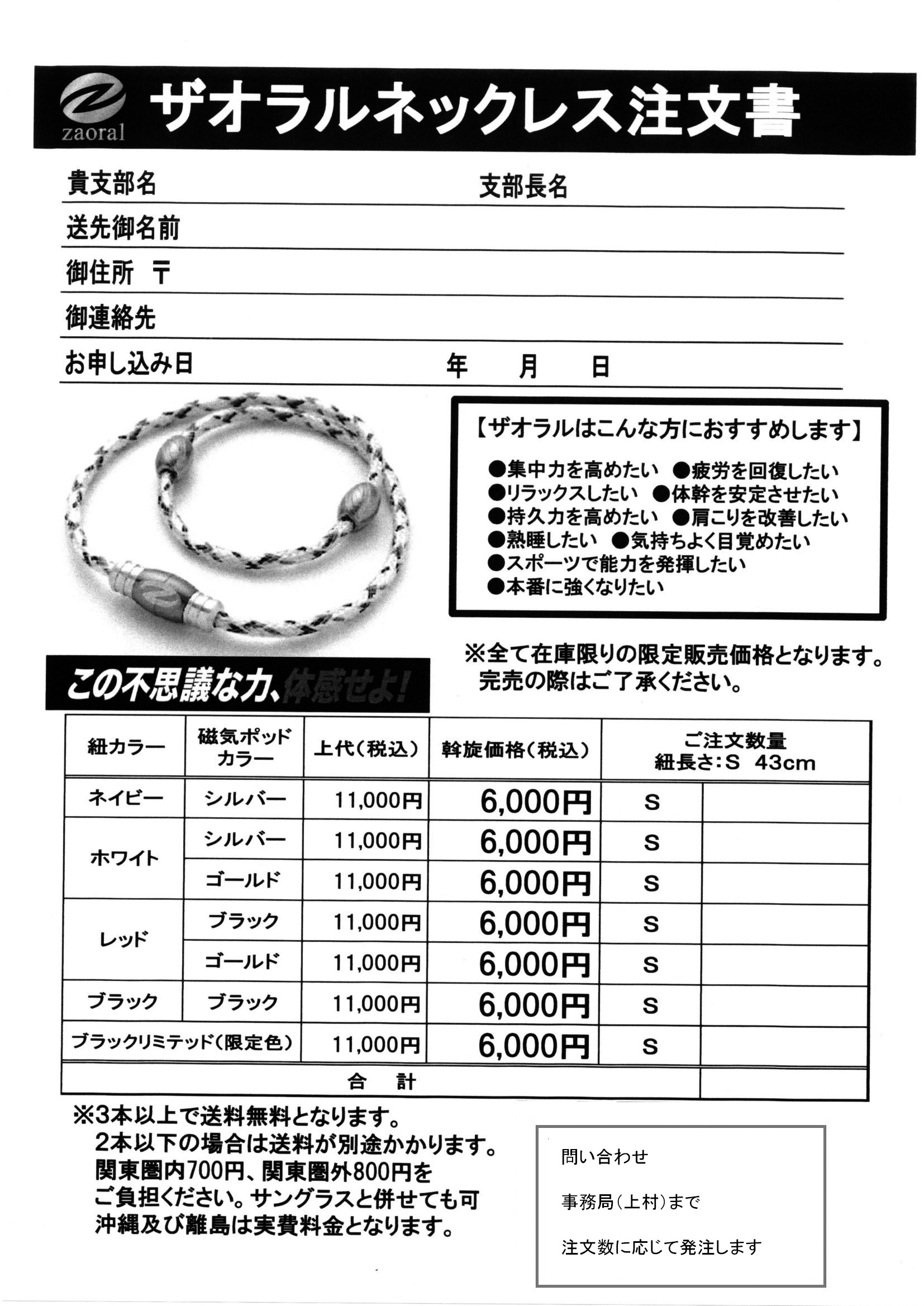 人気のザオラルネックレス特別価格で注文できます!! ● ザオラルネックレス 注文書 高品質・高機能、安全性と耐久性も追求したテニス用サングラですス!! ● サングラス 注文書 ![]() |