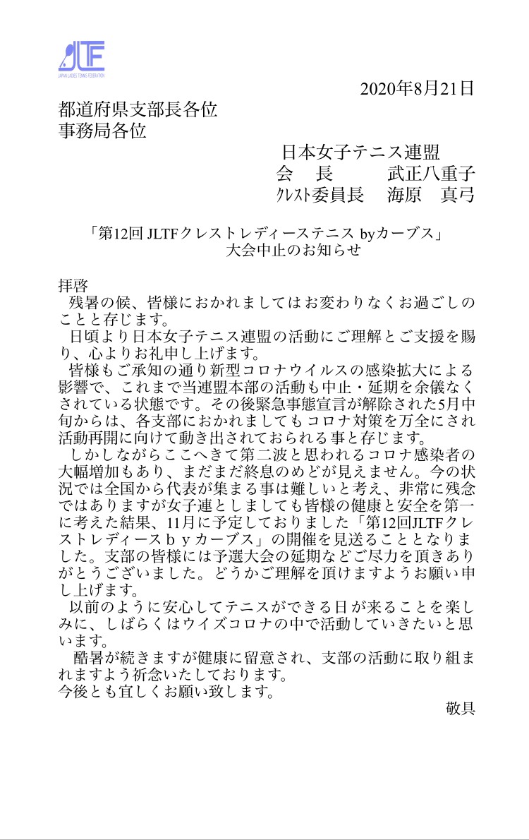 | 2020フレッシュレディースオープン 中止 | 松本市浅間温泉庭球 |